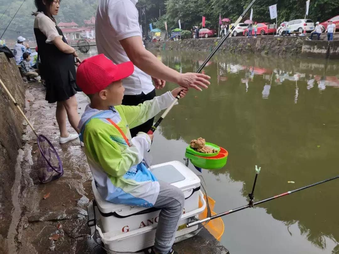 現(xiàn)場比賽的50個家庭,很多都是全家老少齊上陣,或指導(dǎo)或示范,共同協(xié)助小朋友們完成掛餌、甩竿、看漂等一系列釣魚步驟。每個家庭都齊心協(xié)力,團結(jié)合作,在孩子們的歡呼聲中,收獲了一條條大魚。
